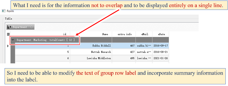 How to modify groupRow text (2)?