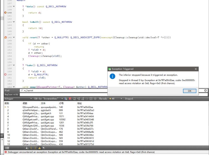 DockDocumentPanel * ddp = dockPanelManager->addDocumentPanel("doc"); <--- application will crash at exit time